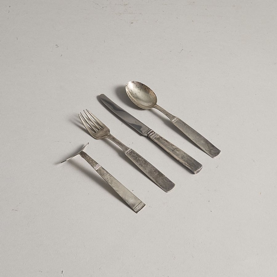 4 delar, silver, monogramsigernade "UP". Längd: 10. 5-16,5, bruttovikt: 118 g, varav kniv 35 g