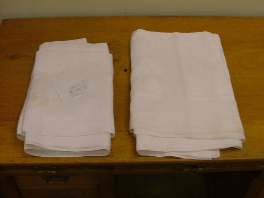 30 st, linne, röd, blå bård, monogrambrodyr, olika..//