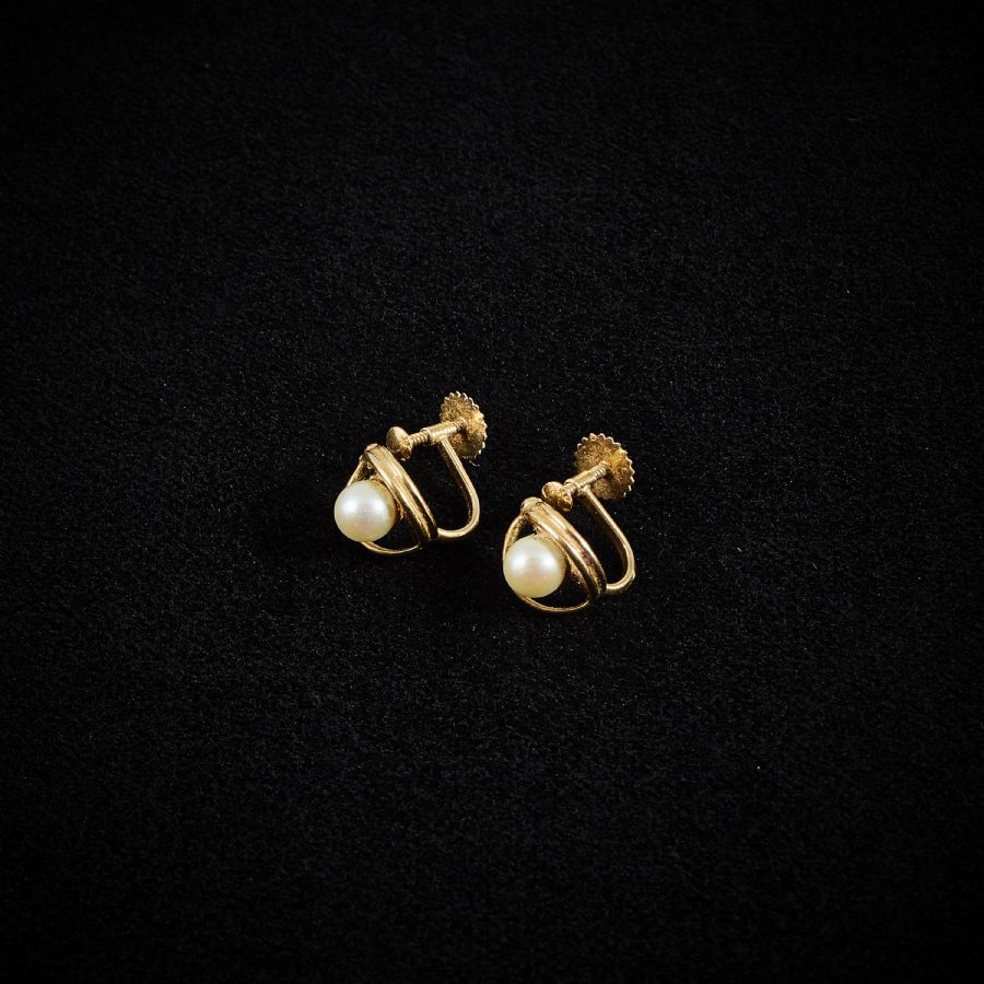 18k guld, ett par, med pärlor. Längd: 2cm, vikt: 2g.