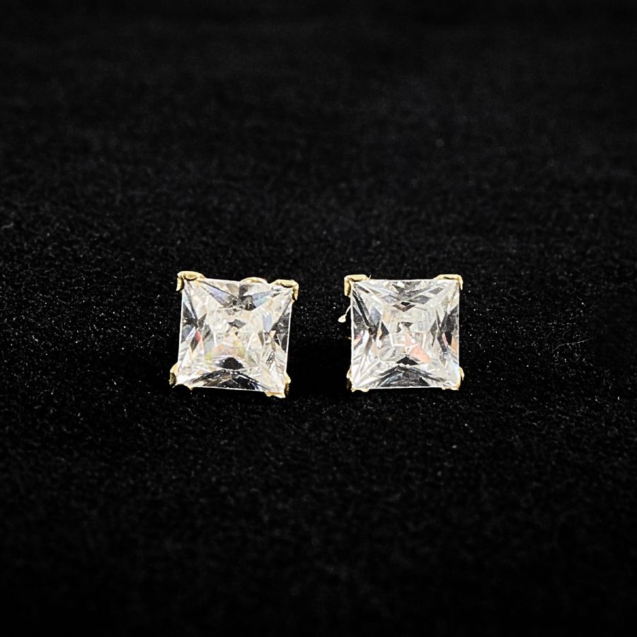Ett par, 18k guld, med stenar. Vikt: 1,5g brutto