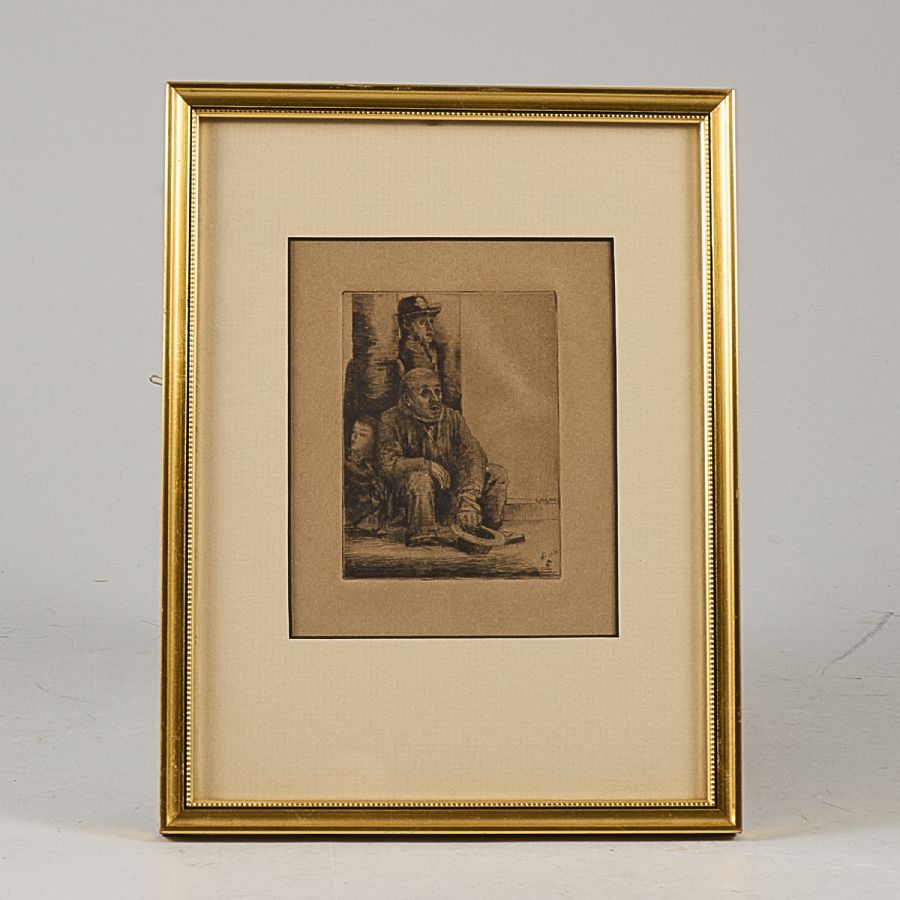 Etsning, Signerad. Bildmått: 10x7cm, yttermått inklusive ram: 26x20cm