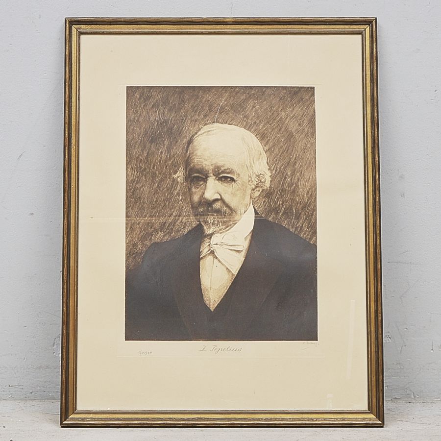 Etsning, Föreställande Zacharias Topelius. Signerad, numrerad 1/25, daterad 1924. Bildmått: 51x38 cm, yttermått inklusive ram: 82x63 cm