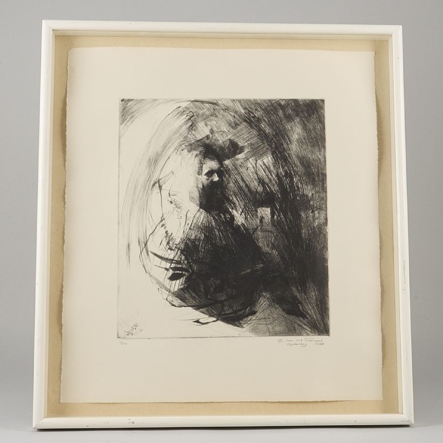 Johm E Franzén. Signerad, numrerad 12/70, daterad 1978, Självporträtt. Bildmått: 35x31 cm, yttermått inklusive ram: 60x54 cm