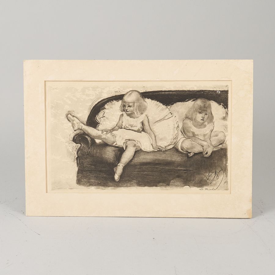 Louis Legrand (1863-1951), "Les Mioches", oramat löst blad. Signerad. Bildmått: 22x37 cm