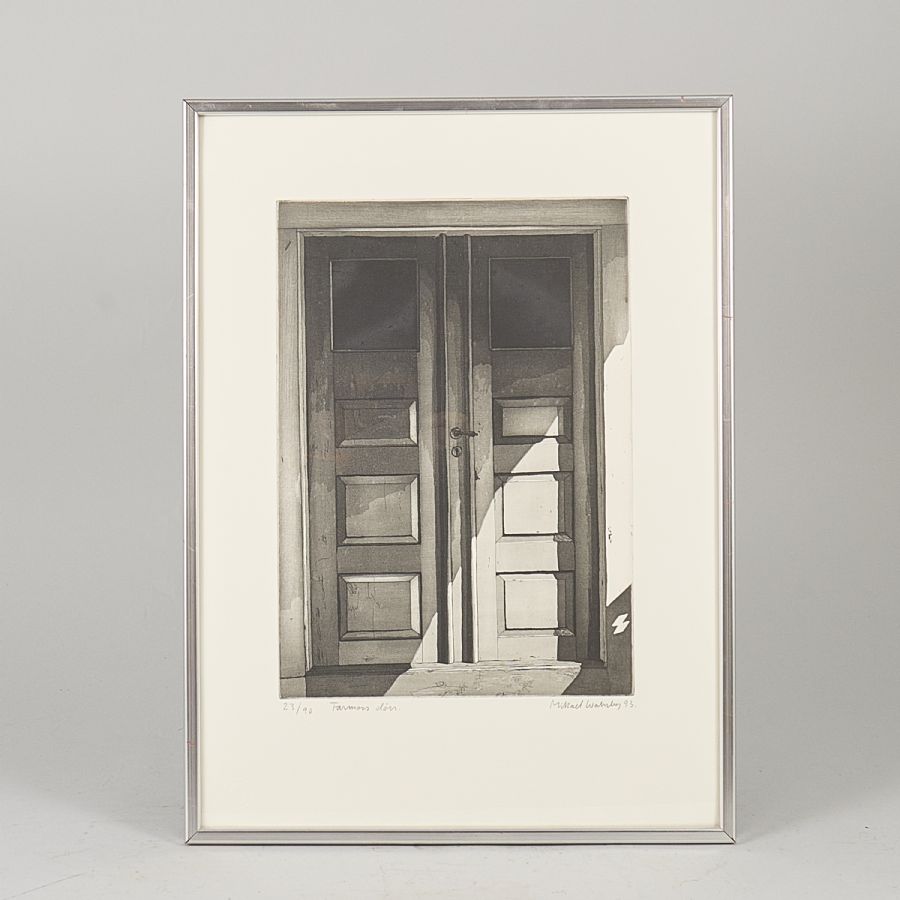 Mikael Wahlberg. Signerad, numrerad 23/90, daterad -93, "Farmors dörr". Bildmått: 34x24 cm, yttermått inklusive ram: 50x37 cm
