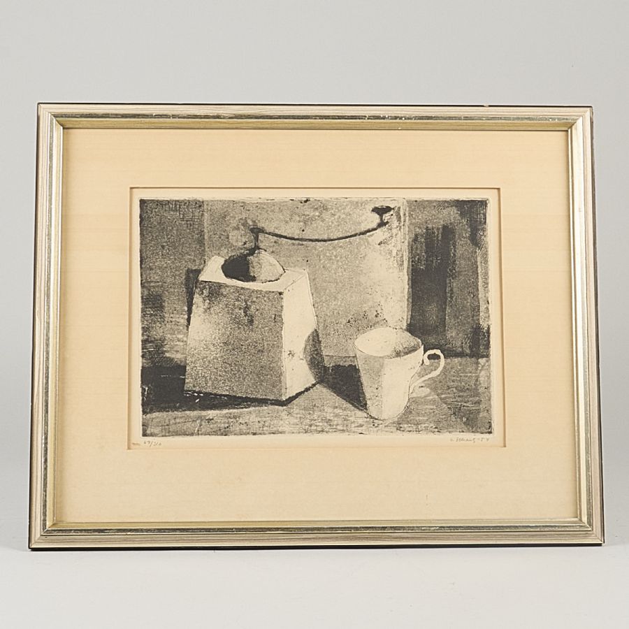 Etsning, Stilleben. Signerad, numrerad 67/310, daterad -54. Bildmått: 20x29 cm, yttermått inklusive ram: 37x47 cm
