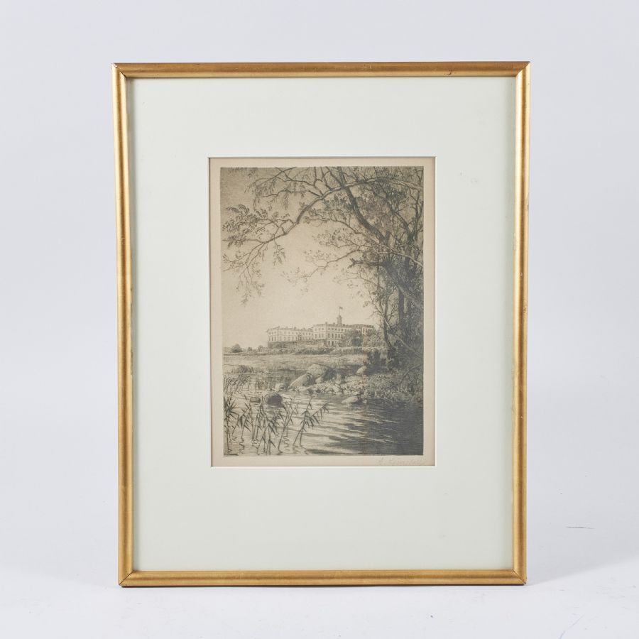 Etsning, Signerad. Bildmått: 26x18cm, yttermått inklusive ram: 47x37cm