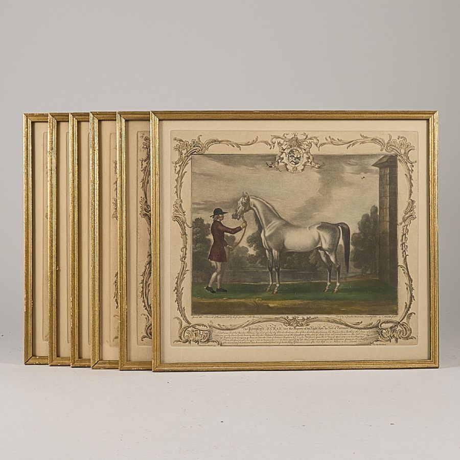 6 st, Kolorerade, hästmotiv. Bildmått: 30x34 cm, yttermått inklusive ram: 36x40 cm. Ej signerad