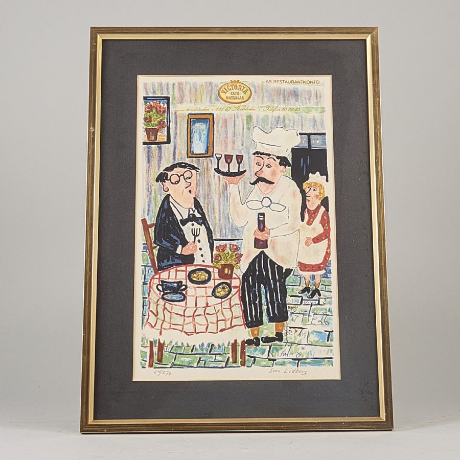 Fäglitografi, Signerad, numrerad 64/270, resturang Victoria. Bildmått: 42x26 cm, yttermått inklusive ram: 55x40 cm