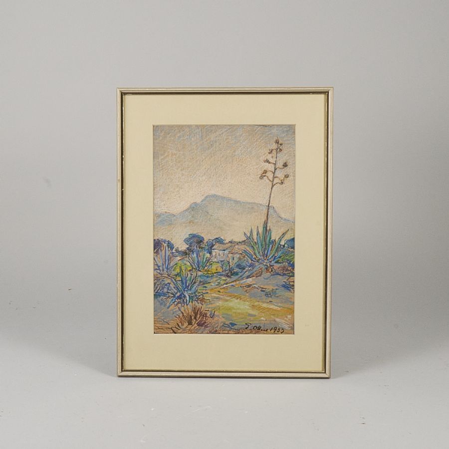 Edvin Ollers (1888-1959), Sweden. Signed, dated 1953, "Blommande Agaver, Altea Spanien". Image dimensions: 29x20 cm, outer dimensions including frame: 41x31,