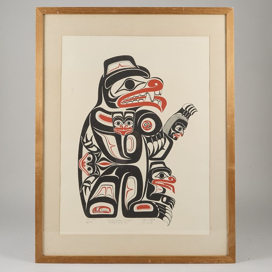 Chris White. Signerad, numrerad 46/150, daterad - 85, "Haida Bear Mother". Färglitografi, bildmått: 53x39 cm, yttermått inklusive ram: 68x53 cm