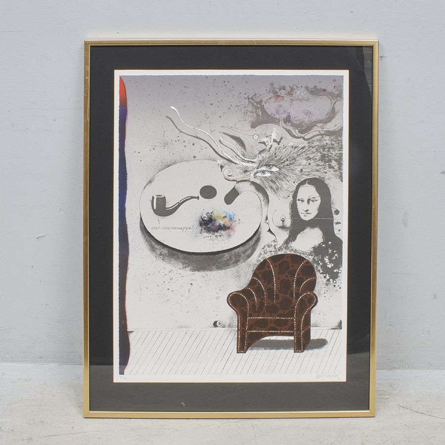 Signerad, numrerad 8/50. Färglitografi, bildmått: 76x57 cm, yttermått inklusive ram: 96x75 cm