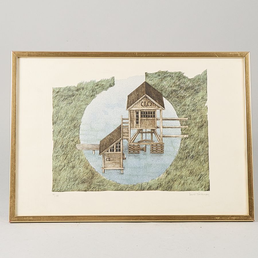 Signerad, numrerad 44/125. Färglitografi, bildmått: 27x33 cm, yttermått inklusive ram: 37x52 cm