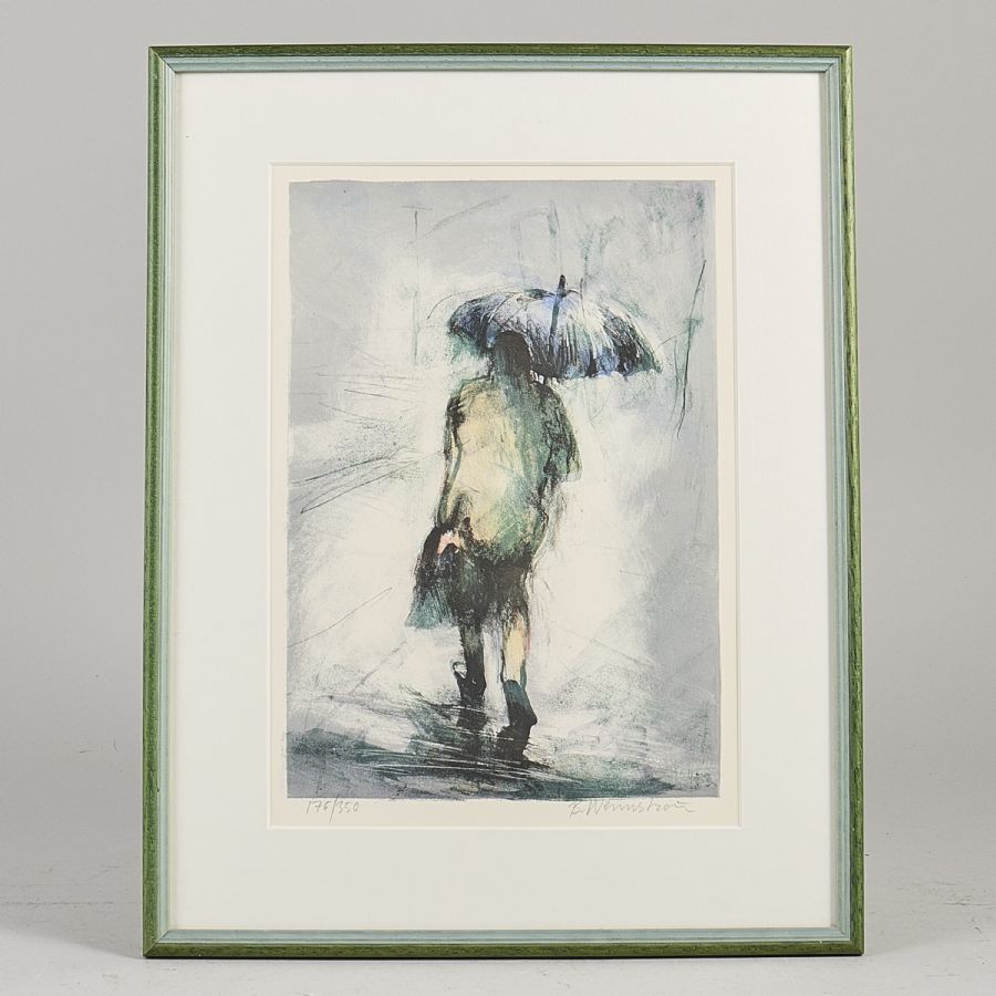 Regndag. Signerad, färglitografi, numrerad 176/350 cm