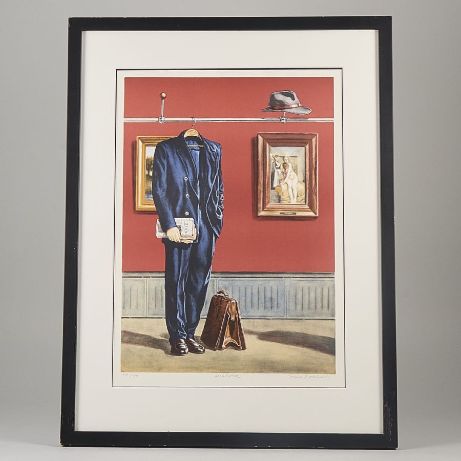 Signerad, numrerad 59/99, "Galghumor". Färglitografi, bildmått: 51x36 cm, yttermått inklusive ram: 74x56 cm