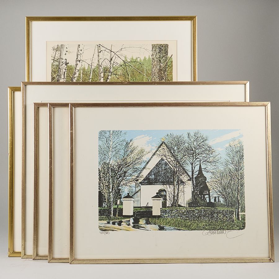 Färglitografi, 5 st, Signerade och numrerade, största rammått: 52x68 och 72x52 cm