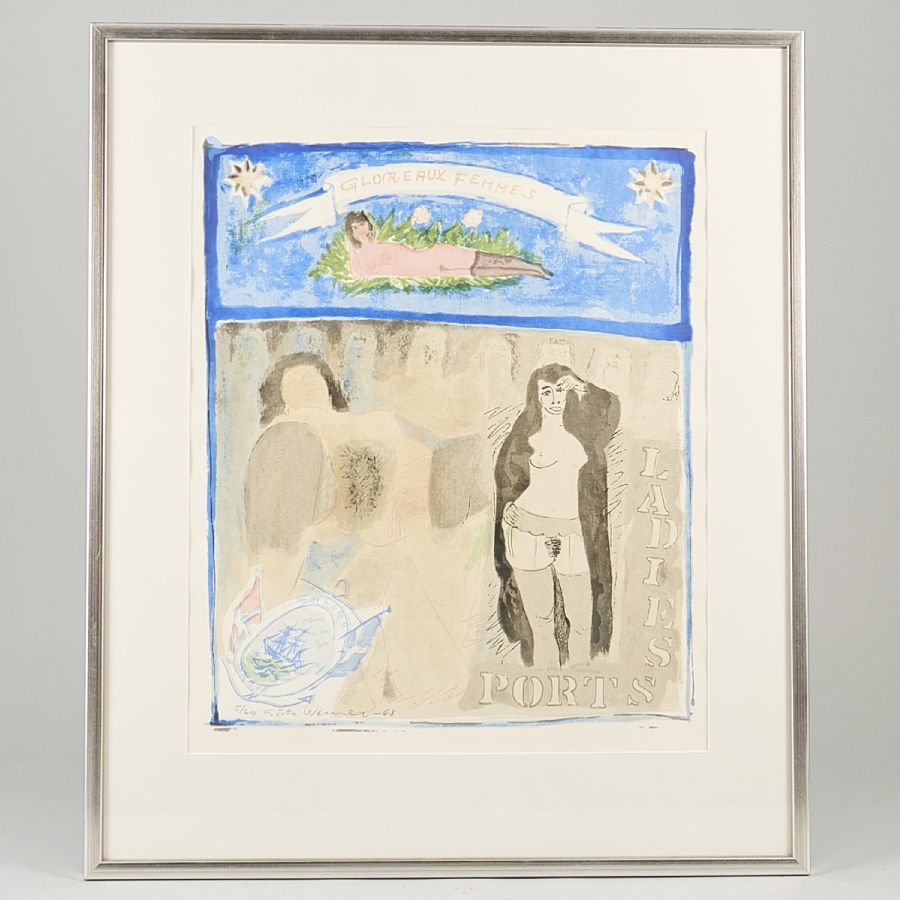 Färglitografi, Signerad, numrerad 5/60, daterad -68, "Gloireaux femmes" mm: 47x40 cm, yttermått inklusive ram: 69x58 cm