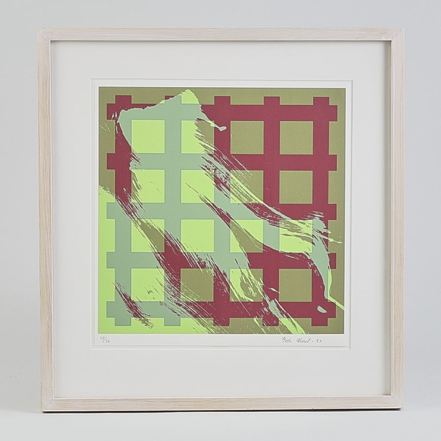 Gösta Wessel. Signerad, numrerad 58/86, daterad -87. Färglitografi. Bladets mått: 32x31 cm, yttermått inklusive ram: 47x45 cm