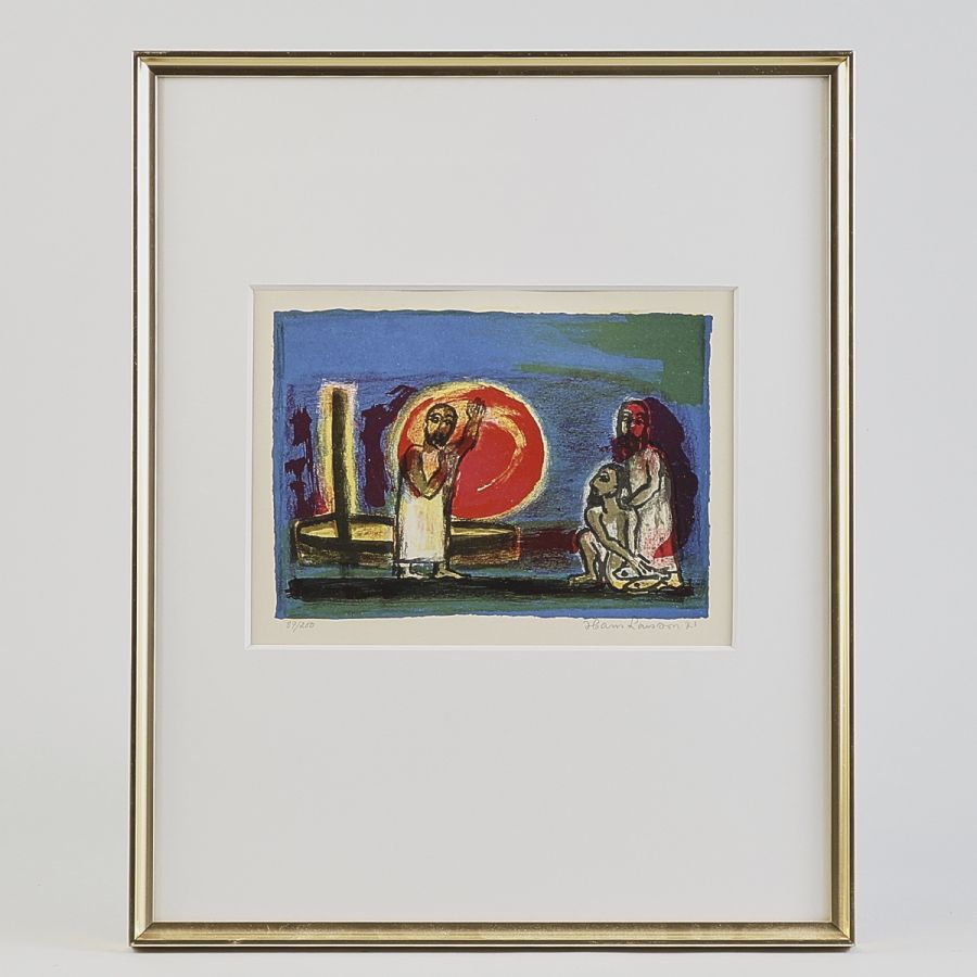 Hans Larsson. Signerad, numrerad 89/200, daterad -71m religiöst motiv, 18x25 cm, yttermått inklusive ram: 52x42 cm