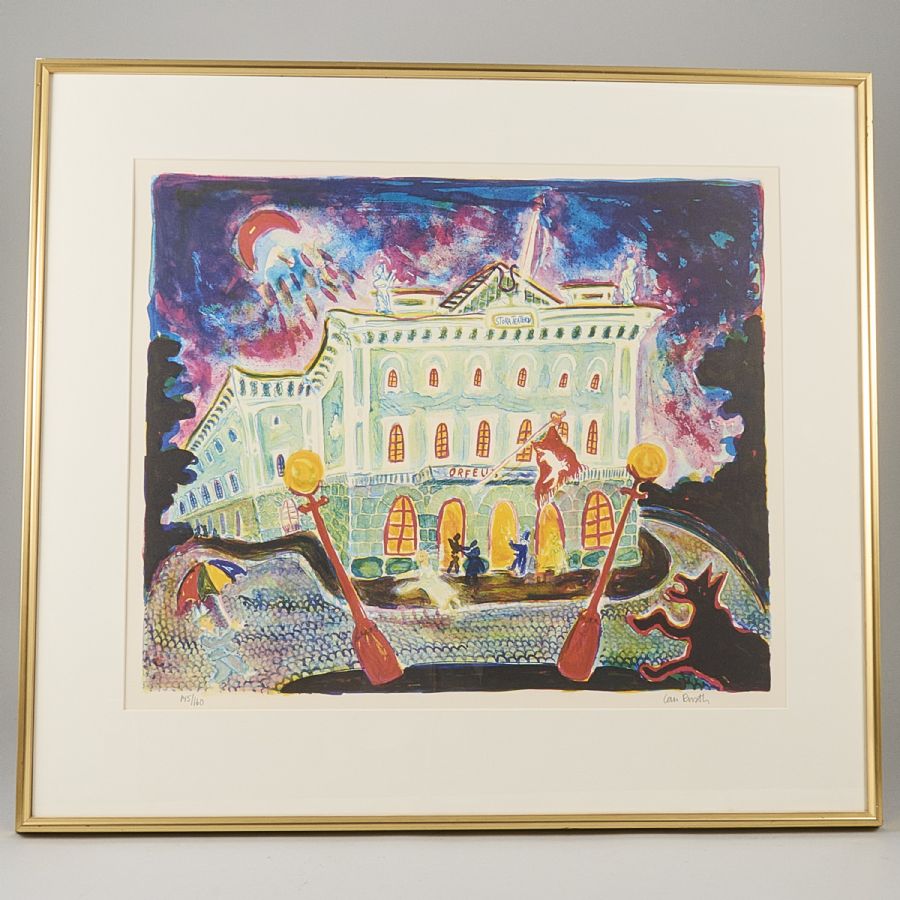 Signerad, numrerad 145/160, "Stora teatern". Färglitografi, bildmått: 48x57 cm, yttermått inklusive ram: 70x78 cm