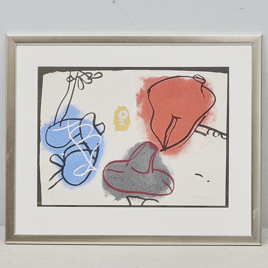 Kjell Strandqvist (b. 1944), composition. Signed, numbered 83/220, dated -92. Litograph in colors. Sheet: 52x72 cm, outer dimensions including frame: 83x100 cm,