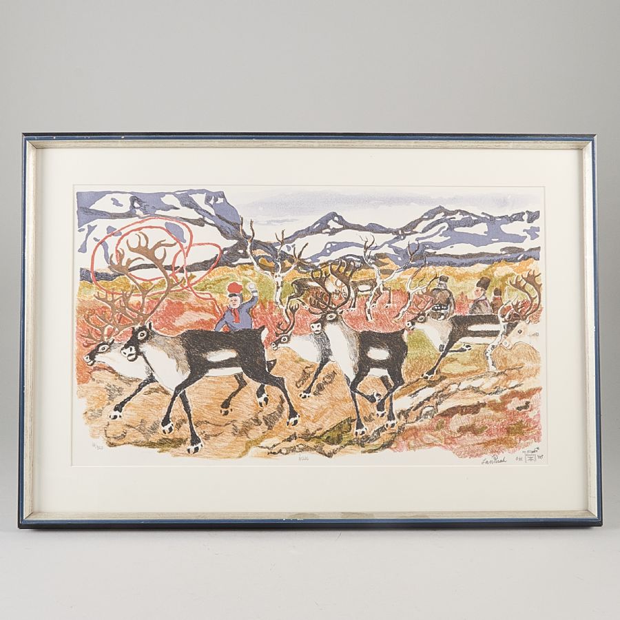 Signerad, numrerad 16/320, renar. Färglitografi, bildmått: 33x57 cm, yttermått inklusive ram: 49x71