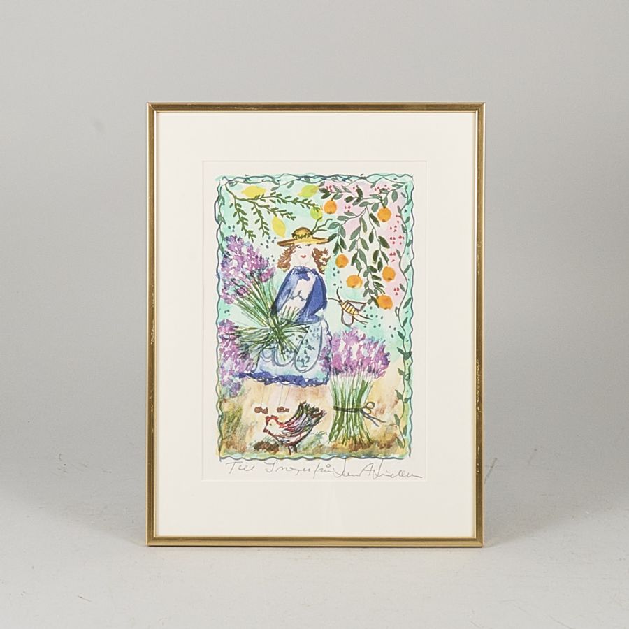 Lena A Linderholm (f. 1947), Sverige. Signerad. Färglitografi, bildmått: 29x20 cm, yttermått inklusive ram: 45x34 cm