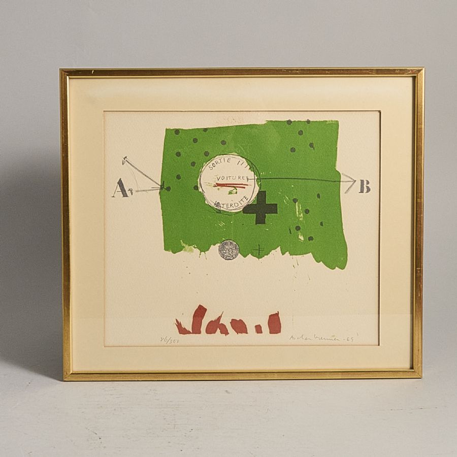 Signerad, numrerad 86/300 -65. Sortie. Färglitografi, daterad bildmått: 27x31 cm, yttermått inklusive ram: 36x41 cm