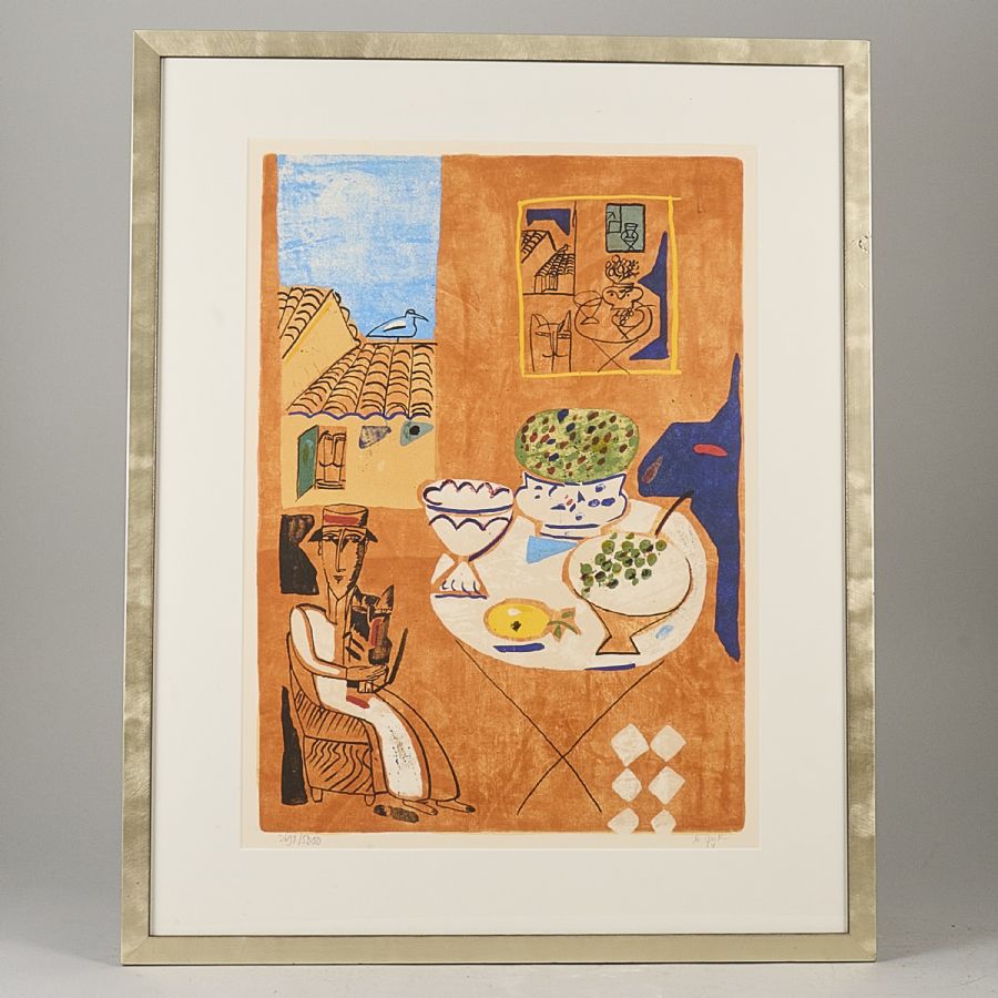 Tema Grafik är en auktion med litografier, etsningar och annan grafik av konstnärer och formgivare som Valerio Adami, Horst Antes, Hans Arnold, Enrico Baj, Ola Billgren, Frank Björklund, Olle Bonniér, ...