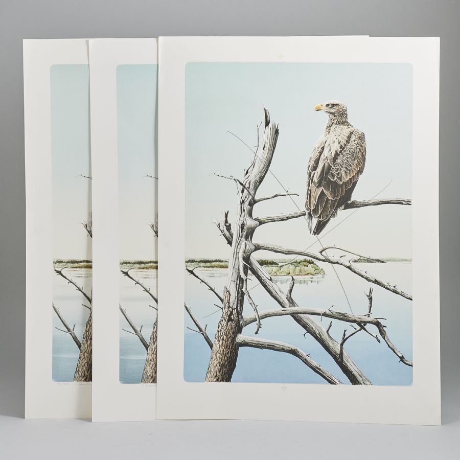 3 st, Oidentifierad konstnär. 2 sign, Havsörn. Bladets mått: 71x52, oramade lösa blad. Signerad, oramade lösa blad