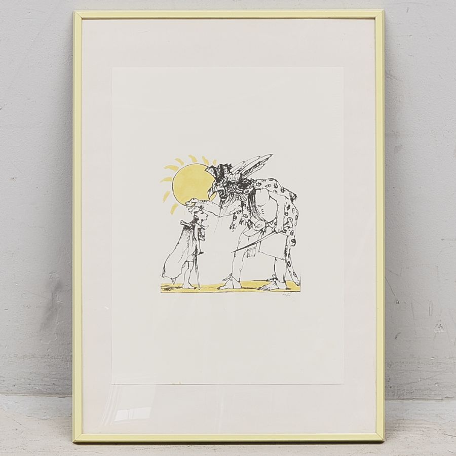 Signerad, färglitografi. Bladets mått: 52x38 cm, yttermått inklusive ram: 72x52