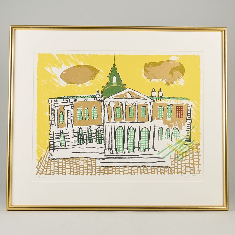 Signerad, numrerad 152/250, Börshuset. Färglitografi, bildmått: 41x55 cm, yttermått inklusive ram: 62x74 cm