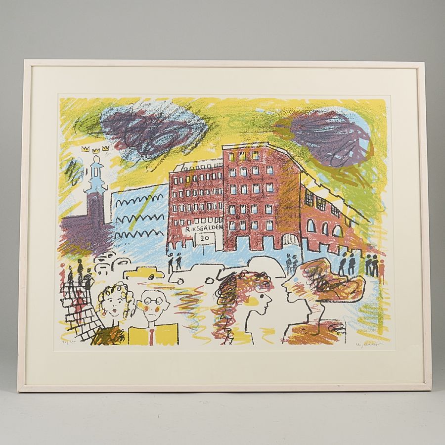 Signerad, numrerad 35/125, Riksgälden. Färglitografi, bildmått: 43x59 cm, yttermått inklusive ram: 58x72 cm