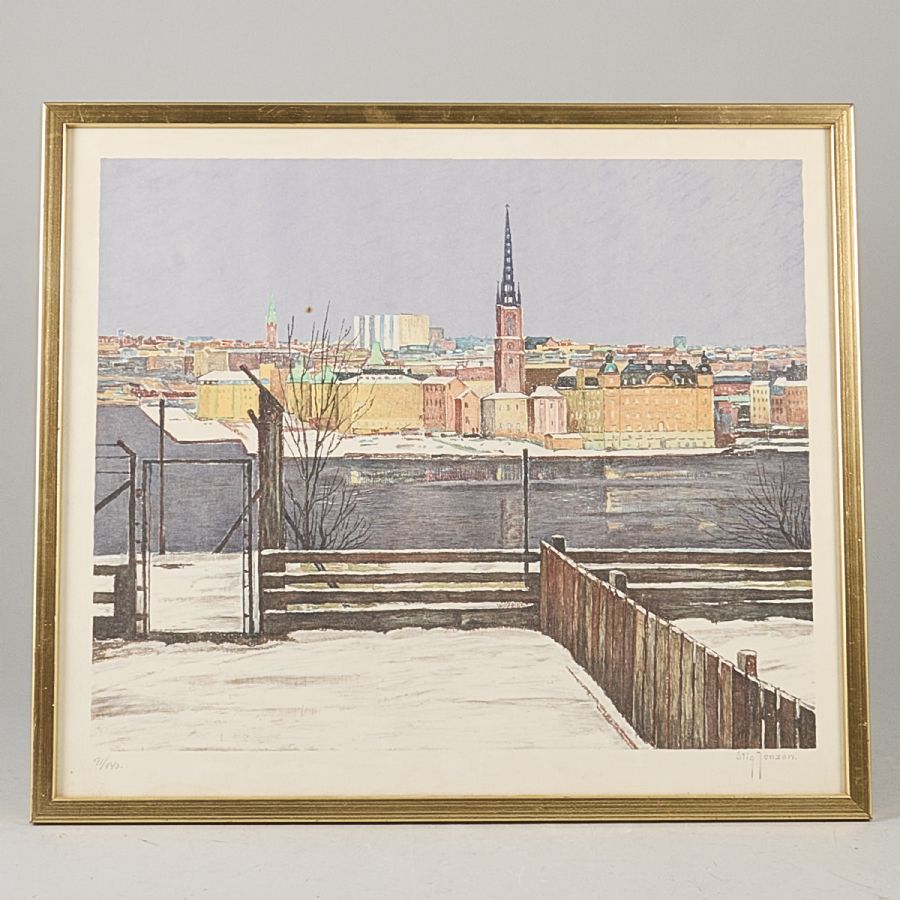 Stig Jonzon (1913-1987), Sweden. Signed, numbered 91/440, Stockholm, Sweden. Litograph in colors, Image dimensions: 40x50 cm, outer dimensions including frame: 48x56,