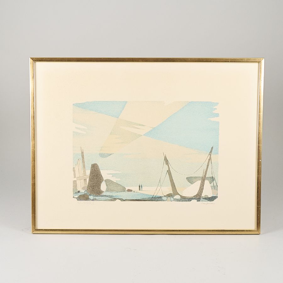 Sven Jonsson. Signerad, numrerad HC 39/50. Färglitografi, bildmått: 28x41 cm, yttermått inklusive ram: 49x65 cm