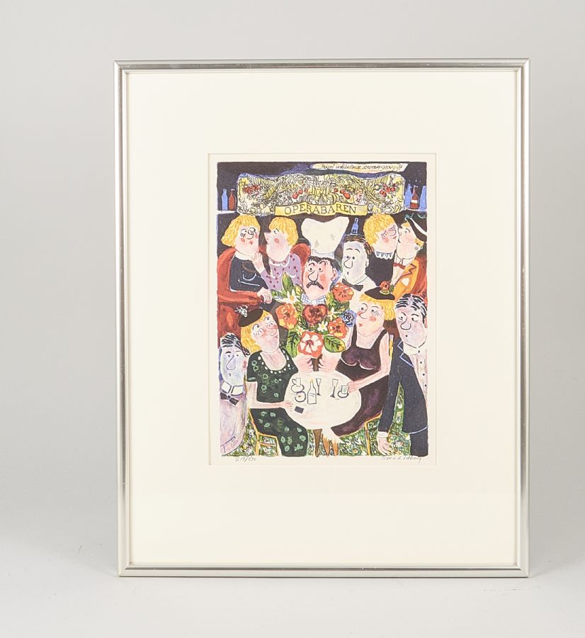 "Operabaren". Signerad, numrerad 219/270. Färglitografi, bildmått: 32x22,5, yttermått inklusive ram: 56x45 cm