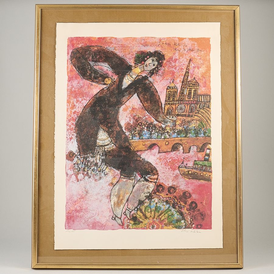 Signerad, numrerad 170/175, "Jéntends tinter les Pierres de Notre Dame". Färglitografi, bildmått: 63x49 cm, yttermått inklusive ram: 89x70 cm. Signerad