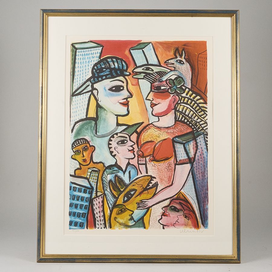 Tema Grafik är en auktion med litografier, etsningar och annan grafik av konstnärer och formgivare som Valerio Adami, Horst Antes, Hans Arnold, Enrico Baj, Ola Billgren, Frank Björklund, Olle Bonniér, ...