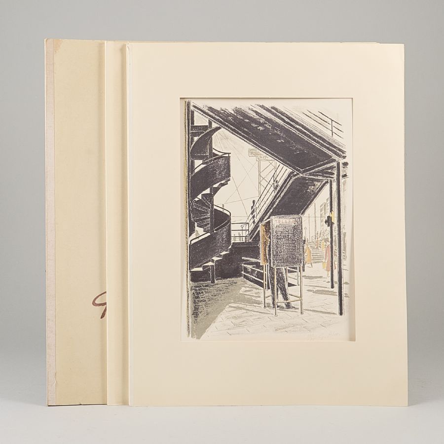 5 st, Gustav Alexanderson, Stockholmsmotiv, bland annat Slussen. Signerad, numrerad 120/175, oramade lösa blad, bredd: 50x39 cm