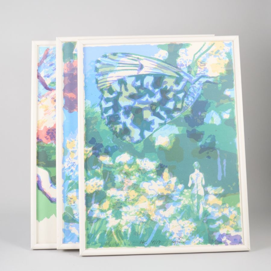 Färglitografier, 3 st, Signerade, numrerade Hc, daterade -89 cm, yttermått inklusive ram: 65x50 cm