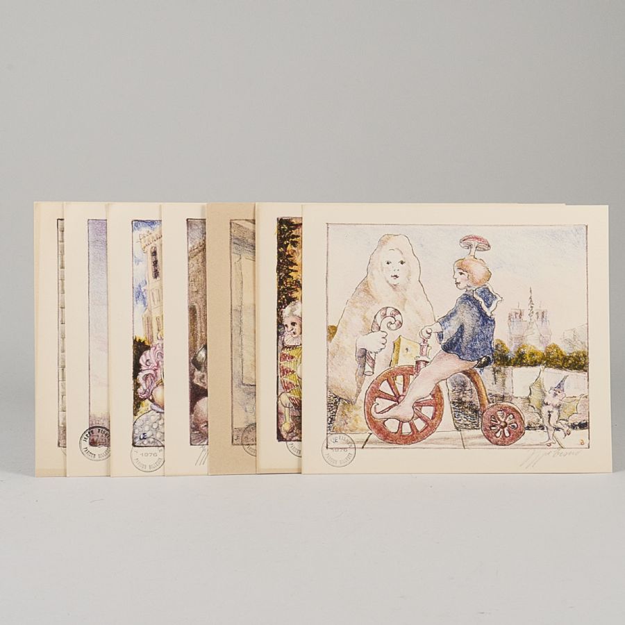 Färglitografier, 6 st, Jeppe Eisner (f. 1952), Signerad, daterad 1976, oramade lösa blad. Färglitografi. Bladets mått: 23x26 cm