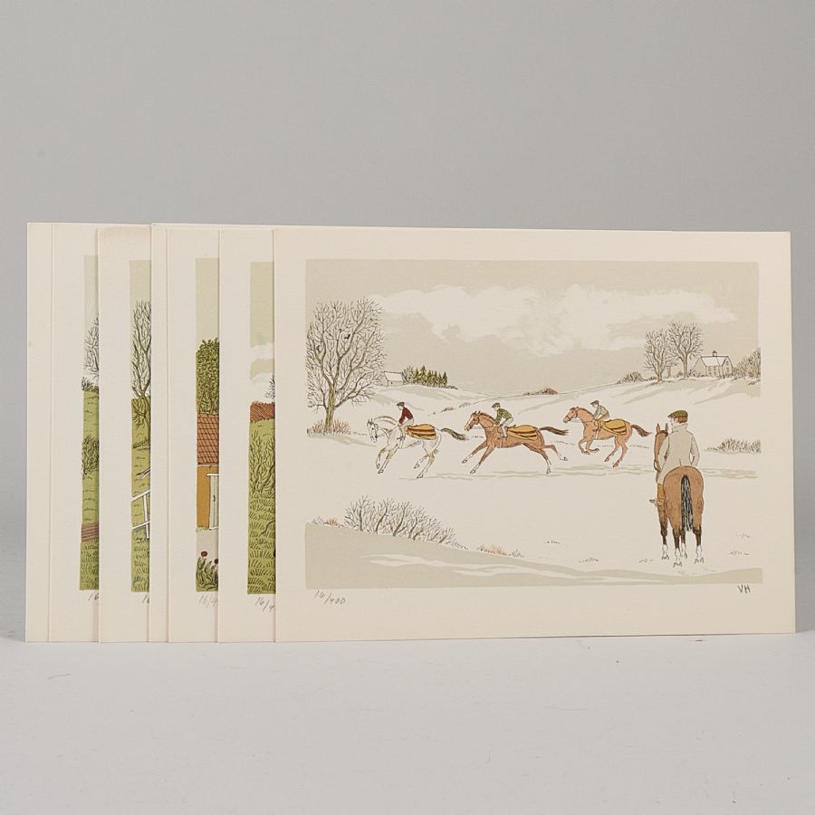 8 st, Vincent Haddelsey (1929/34-2010), oramade lösa blad. Signerad, numrerad 16/400. Färglitografi. Bladets mått: 27x21 cm