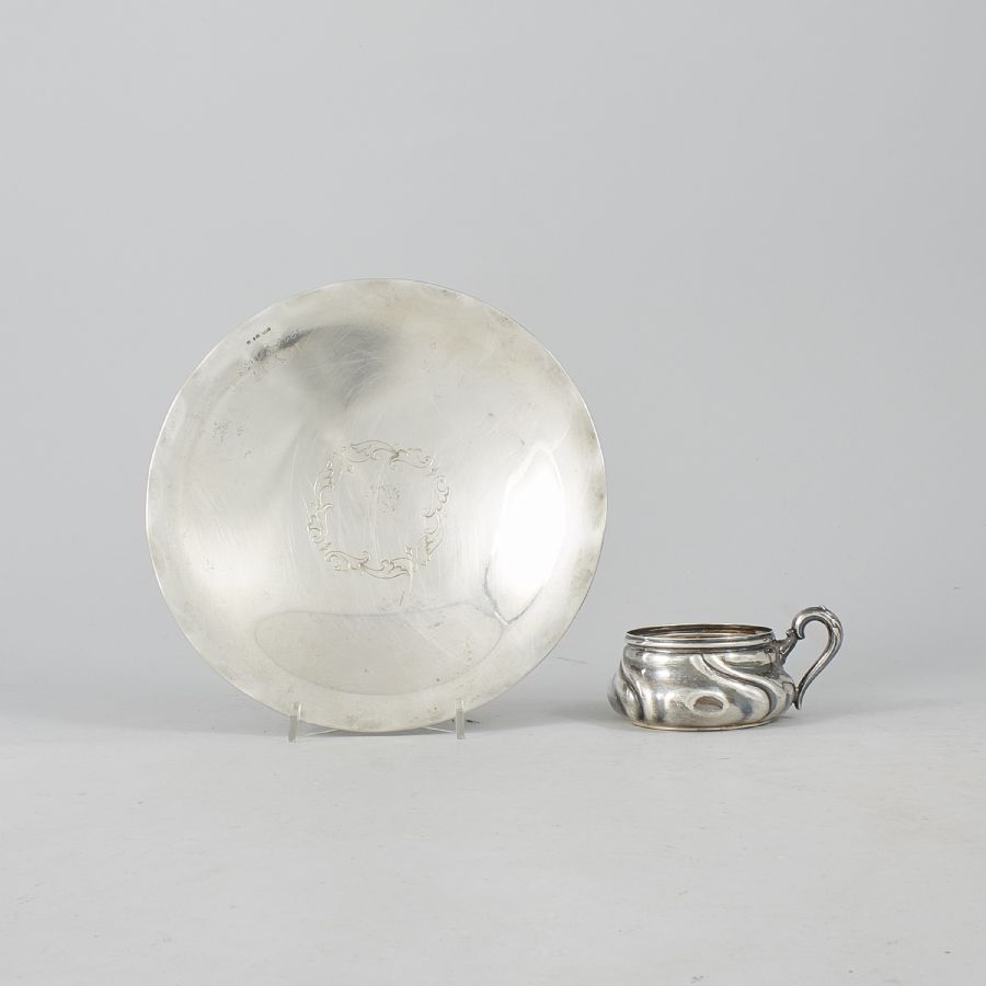 + kopp, silver. Diameter: 22. Höjd: 5 cm. Vikt: ca 223 g + ca 62 g.