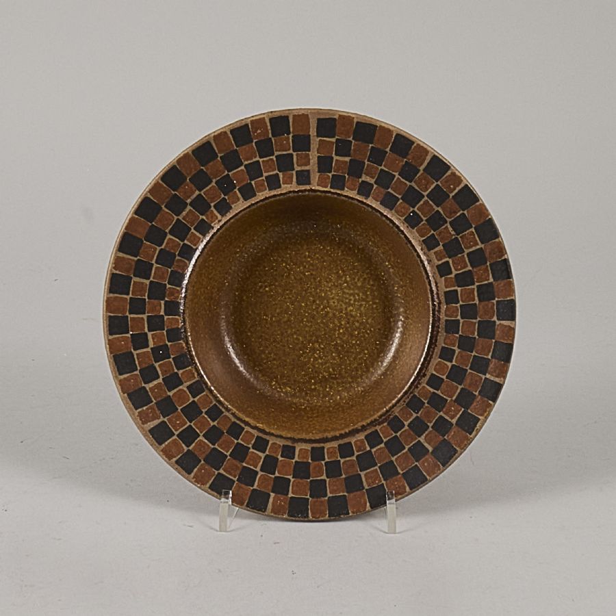 Fat, Silur, Gustavsberg, 1960-tal, chamotterat stengods i brunt och svart. Diameter: 19 cm