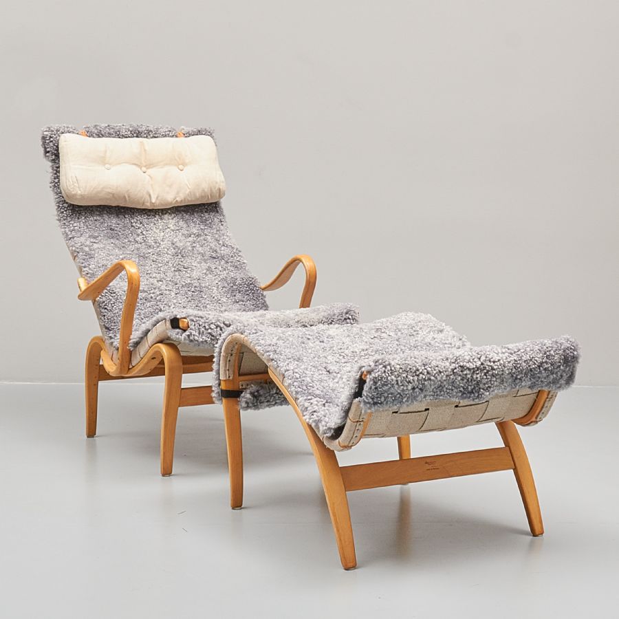 Fåtölj, + fotpall, design: Bruno Mathsson (1907-1988), Pernilla