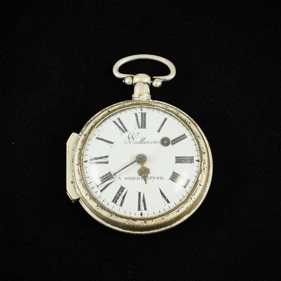 silver (omärkt), 1700-tal, urtavlan märkt Wallerius i Norrköping. Diameter: 6,5 cm, bruttovikt: ca 135 g