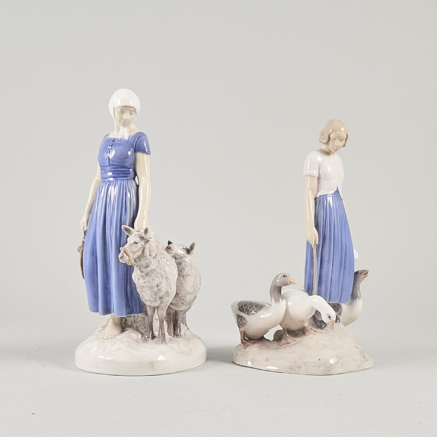 2 st, Bing & Grøndahl, porslin, nr, 2010 och 2254. Höjd: 24-27 cm