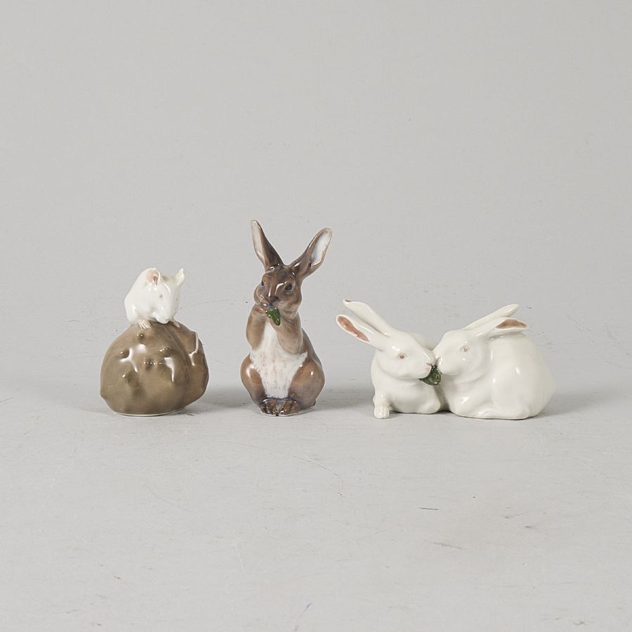 3 st, Royal Copenhagen, kaniner & mus. Höjd: 55,5-9 cm