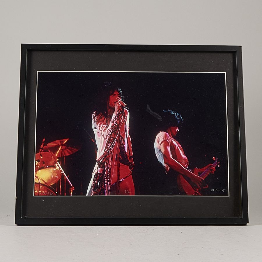 Ed Finnell. Signerad, numrerad 1/50, daterad 1975,30x44 cm, yttermått inklusive ram: 42x52 "Aerosmith"