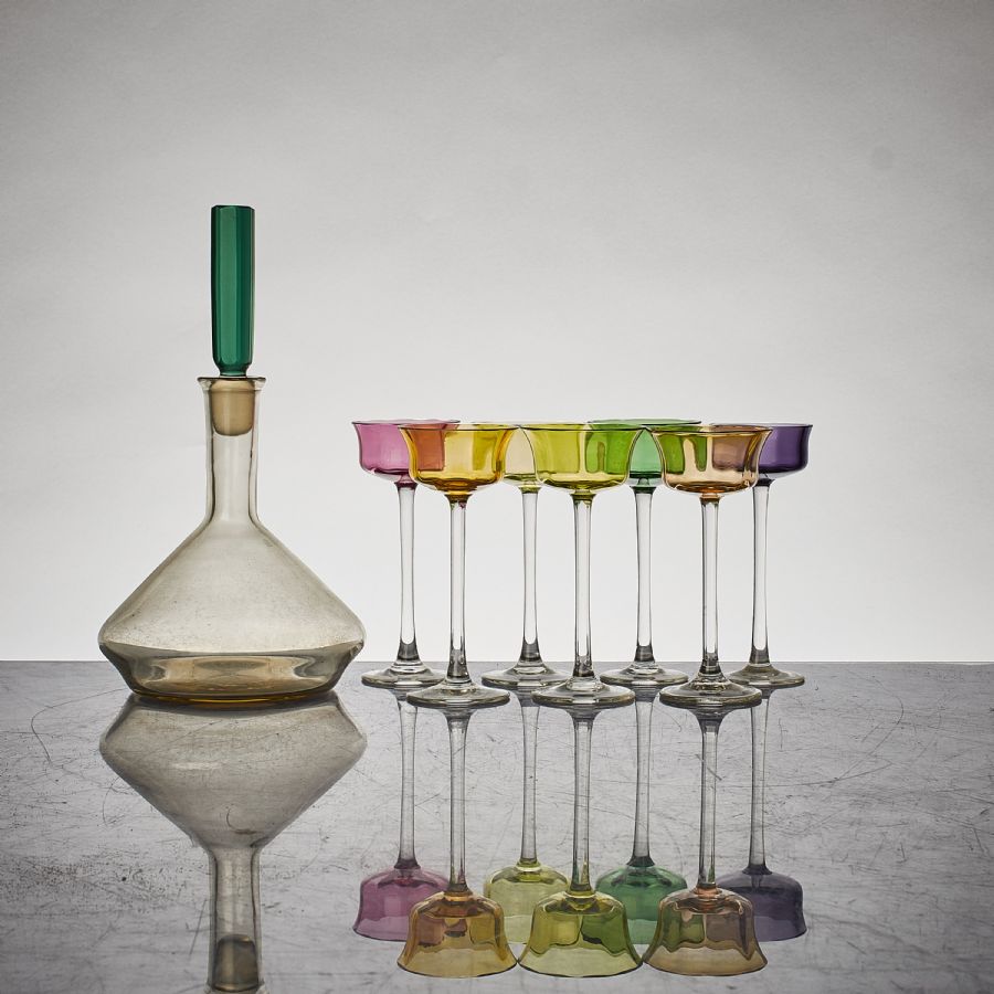 + karaff, 7+ 1 delar. Höjd: 12 cm